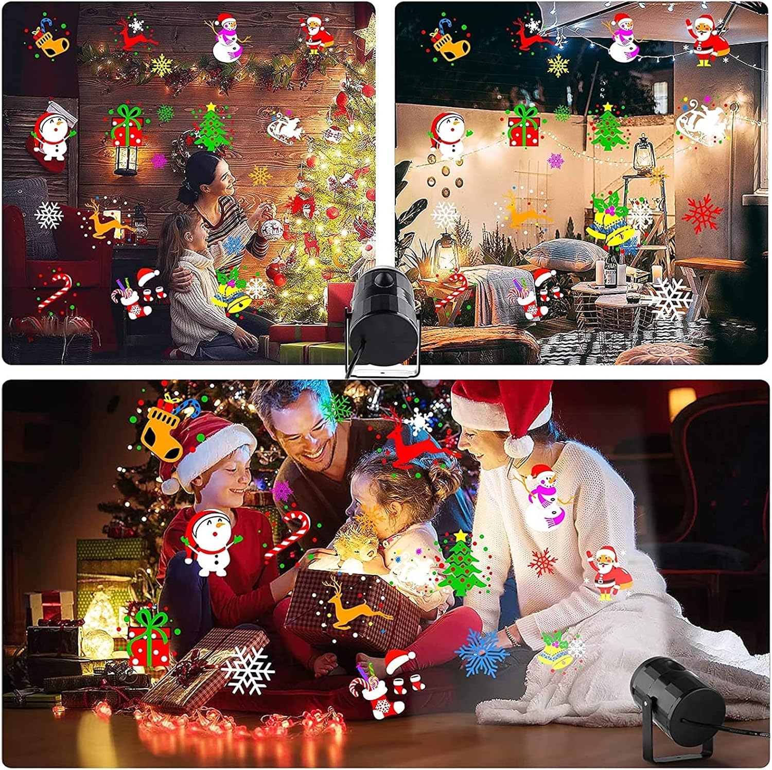 Luces que trabajan por ti, Este proyector proyecta figuras navideñas en movimiento automáticamente.